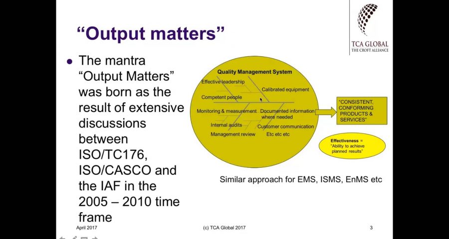 Over the years, management system standards have undergone a significant transformation from being very prescriptive and procedure focused to the latest iterations that concentrate on performance (outcomes) with very little prescribed documentation. This presentation will discuss the implications of these changes, both for organizations that are implementing the system and for the auditors who need to verify system effectiveness. It will focus on the three main concepts that need to be understood in order to conduct a successful audit: the organization’s processes, the risks associated with those processes, and the use of the plan-do-check-act cycle to manage the processes and the system as a whole.